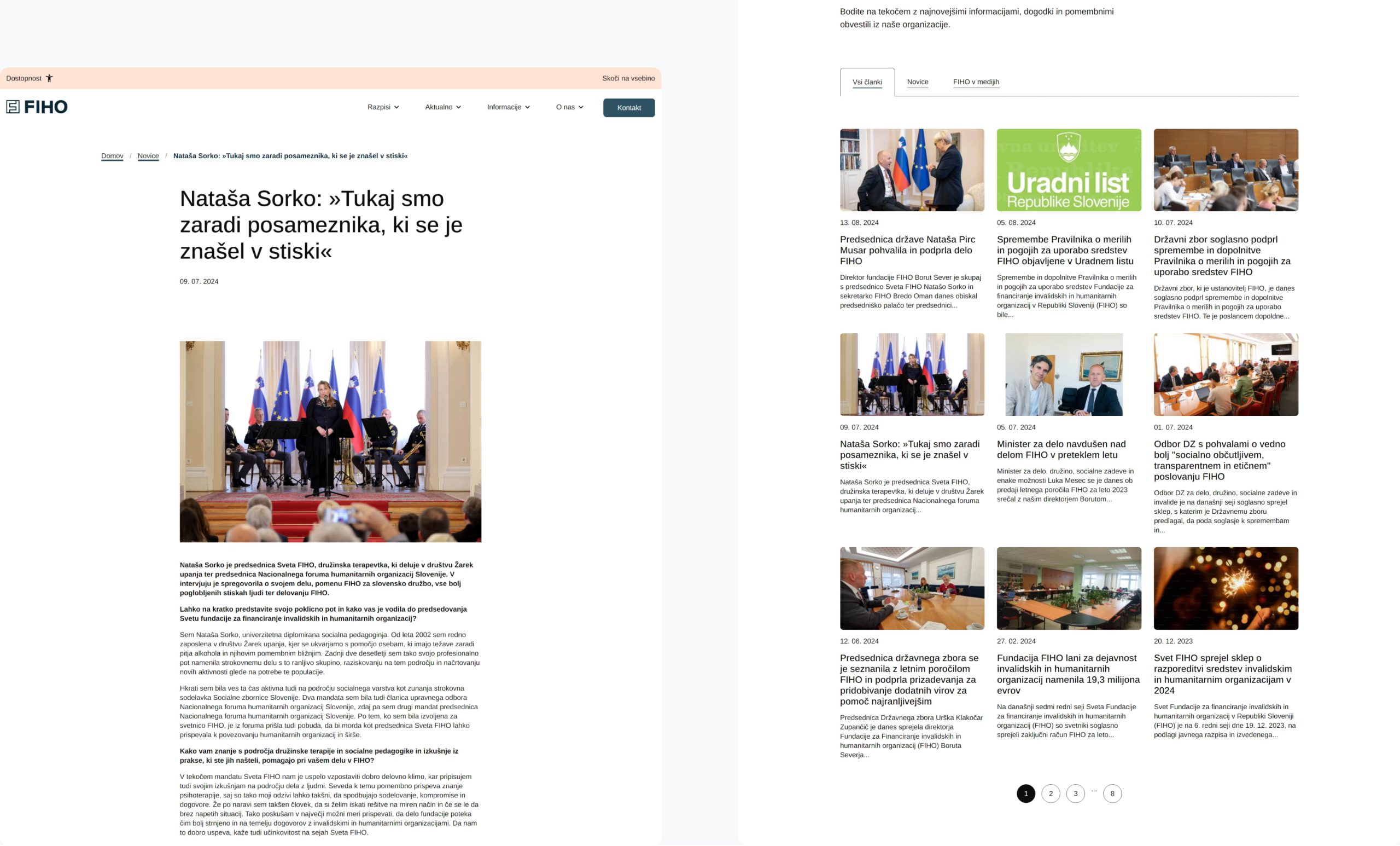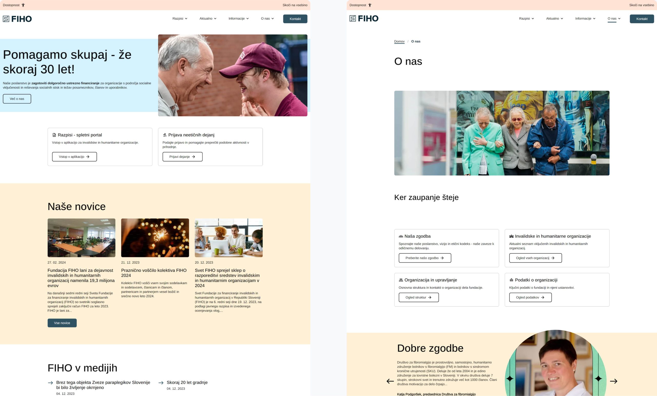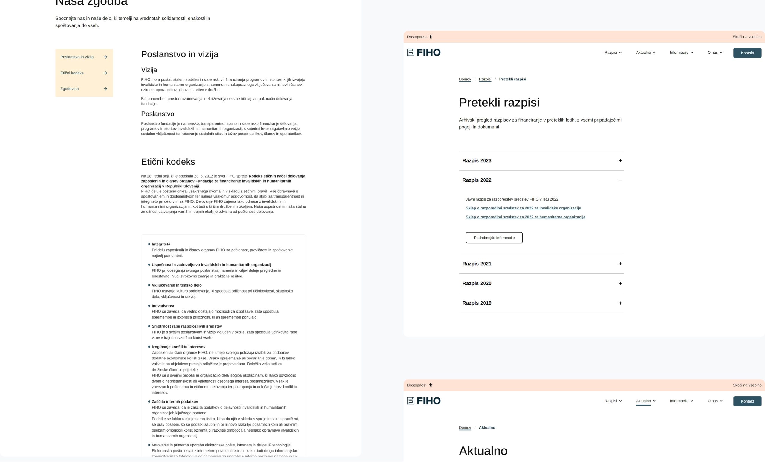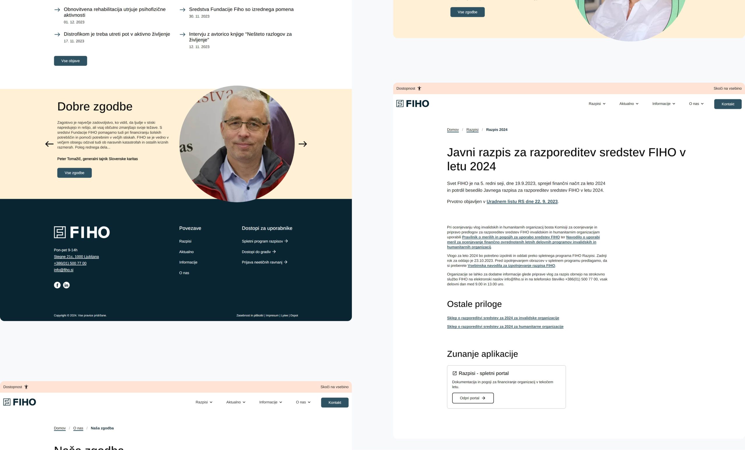 Ključen razlog za prenovo pa je (spletna) dostopnost – oblikovanje strani po smernicah WCAG, sploh zaradi namena same fundacije FIHO. Po besedah zaposlenih pa je bila dobrodošla tudi osvežitev vizualne podobe strani in prijaznejša prilagoditev za vse vrste naprav.