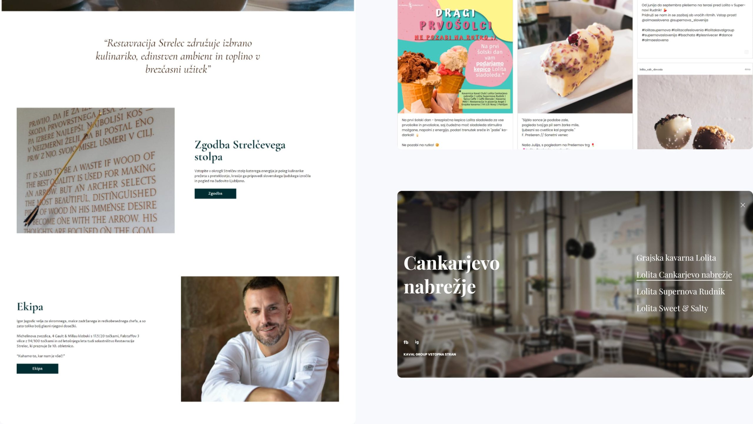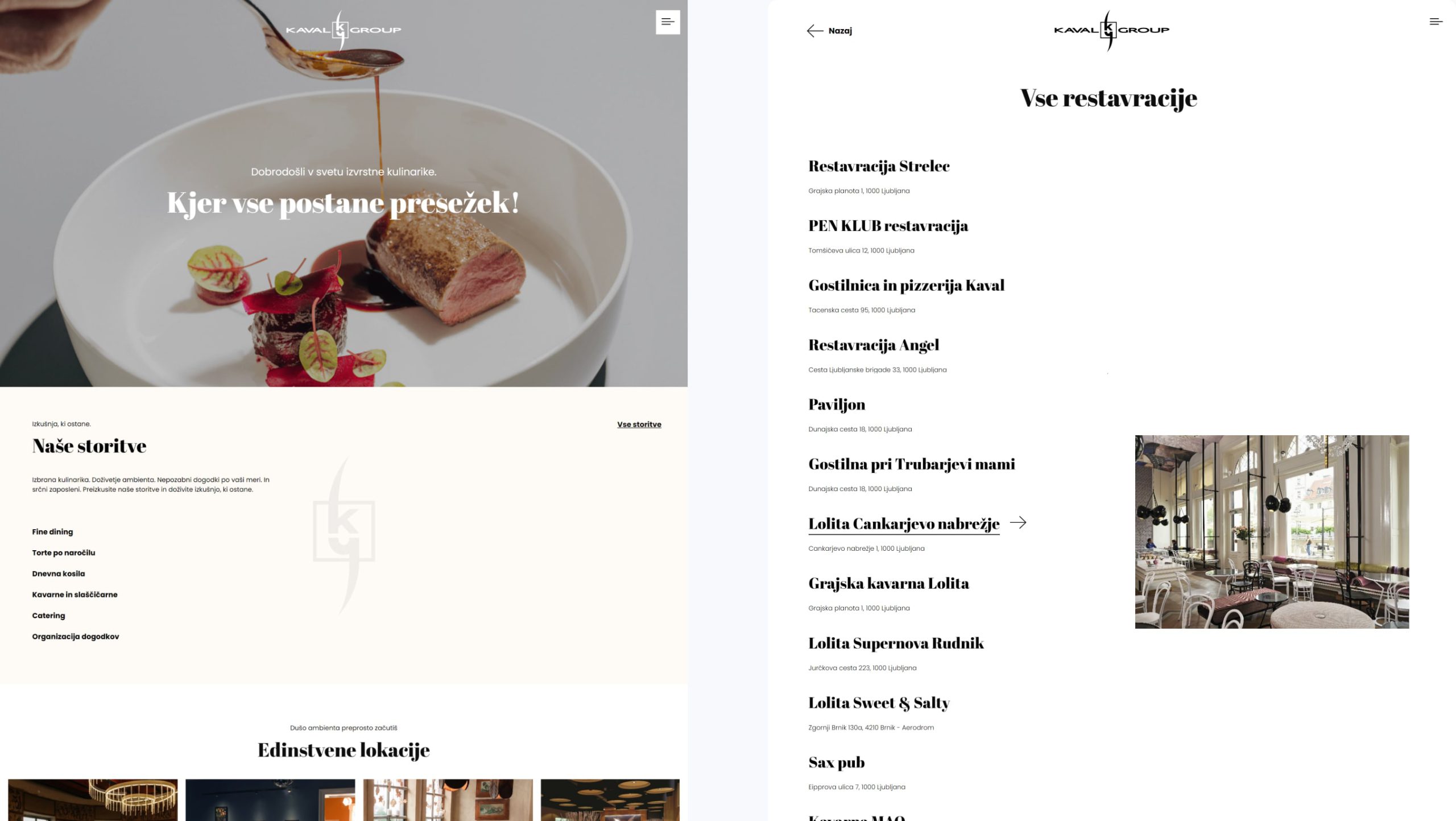 Stranka je zastavila ambiciozno prenovo spletnih strani celotne skupine Kaval Group – od glavne strani (s celotno ponudbo), do posameznih strani restavracij in lokalov (ter njihove specifične ponudbe), kot tudi dodatno izpostavljenih npr. Strelec in Lolita.