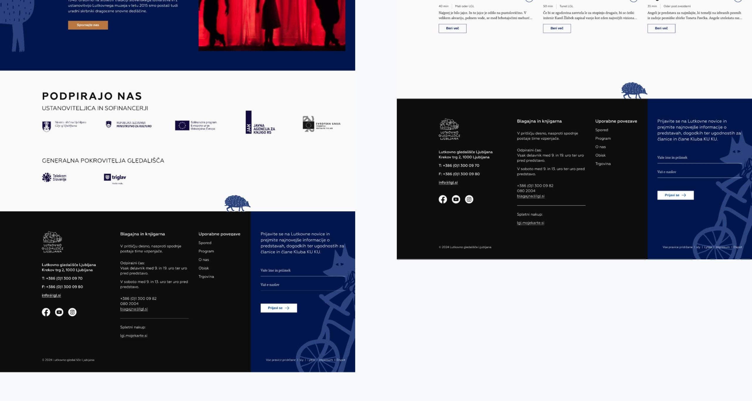 Stran je bilo potrebno vizualno in funkcionalno posodobiti, saj se je z leti dodajalo nove funkcije. Prav tako je bila želja vnesti igrivost, ki so jo prinesle nove ilustracije v sklopu prenove CGP in so dejansko prisotne tudi v okolici samega gledališača.